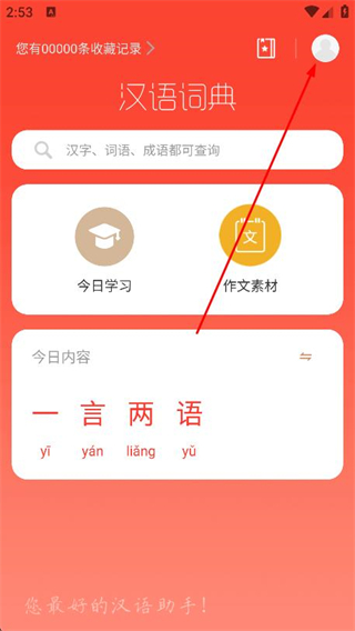1、打開漢語詞典APP,點擊右上角的個人頭像圖標。