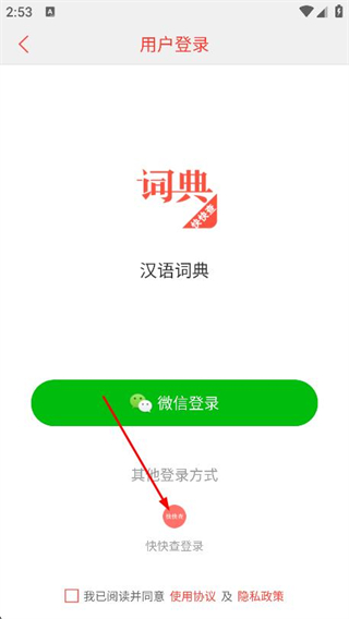 3、在登錄頁面,找到并點擊下方的快快查登錄方式。