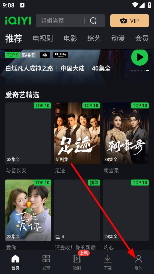 1、打開愛奇藝APP進(jìn)入首頁,點(diǎn)擊底部導(dǎo)航欄中我的選項(xiàng)進(jìn)入個人頁面。
