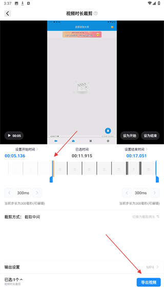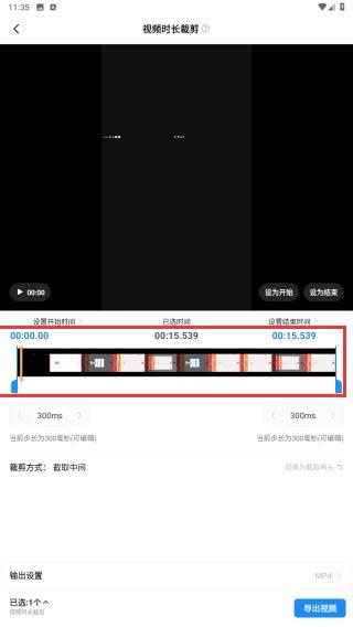 3、在裁剪的頁(yè)面內(nèi),拖動(dòng)視頻兩側(cè)的按鈕后點(diǎn)擊導(dǎo)出視頻即可。
