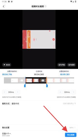 4、裁剪好后,再點(diǎn)擊導(dǎo)出視頻的按鈕即可裁剪成功。