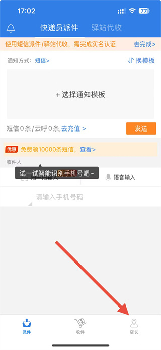 1、打開快遞100APP,點擊右下角店長進(jìn)入個人頁面。