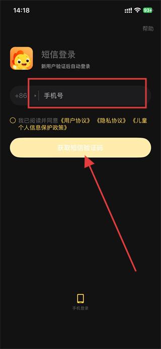 2、在短信登錄頁面,輸入手機號,并獲取短信驗證碼。