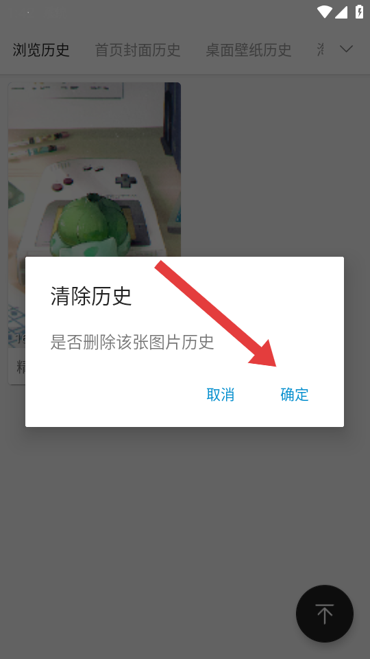 3、在瀏覽歷史頁面,長按要?jiǎng)h除的圖片記錄,觸發(fā)清除歷史確認(rèn)彈窗。