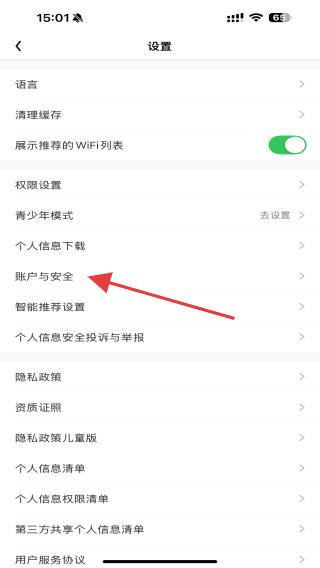 1、在設(shè)置的頁(yè)面中,用戶需找到并點(diǎn)擊賬號(hào)與安全的選項(xiàng)。