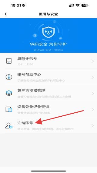 2、在賬號(hào)與安全的頁(yè)面中,點(diǎn)擊注銷賬號(hào)的選項(xiàng)即可展開相關(guān)的內(nèi)容。