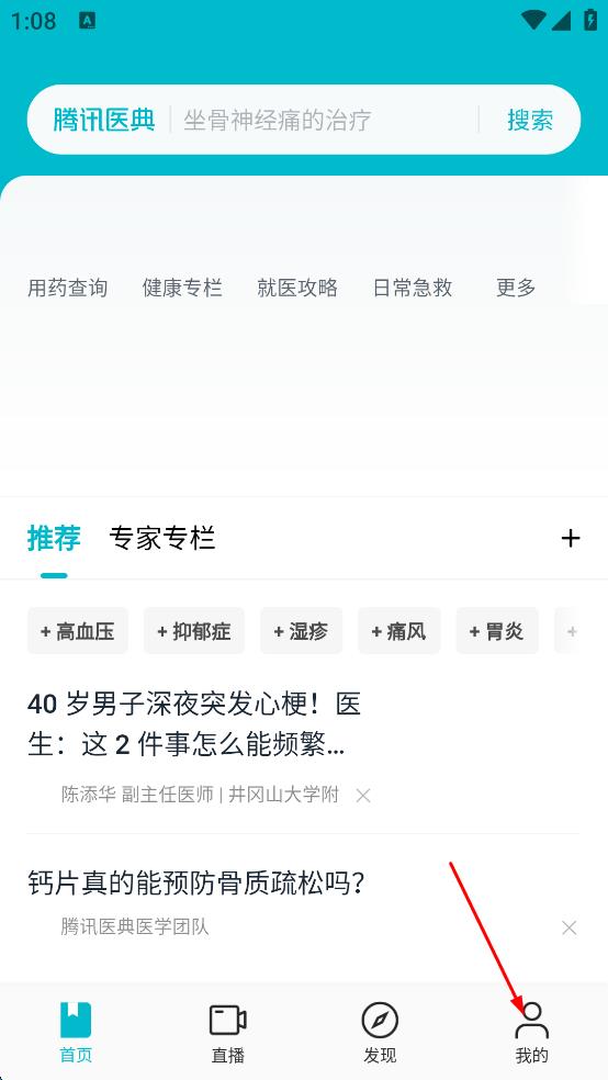 2、在騰訊醫(yī)典首頁,點擊右下角我的,進入個人頁面。