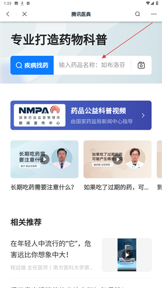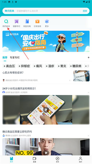 1、打開騰訊醫(yī)典APP,進入首頁點擊上方用藥查詢。