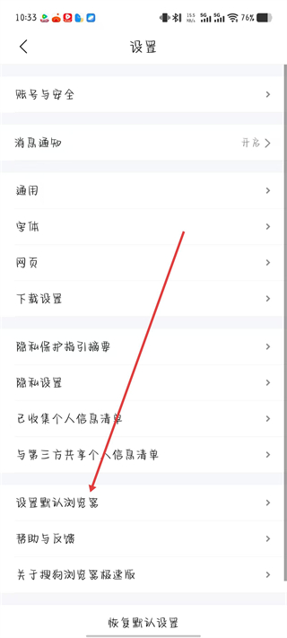 3、在設(shè)置頁面,點(diǎn)擊設(shè)置默認(rèn)瀏覽器選項(xiàng)。