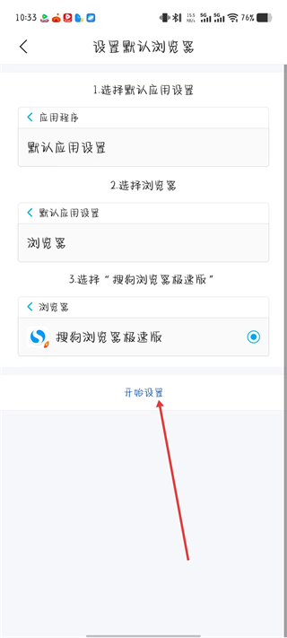 4、在設(shè)置默認(rèn)瀏覽器頁面,點(diǎn)擊開始設(shè)置按鈕。