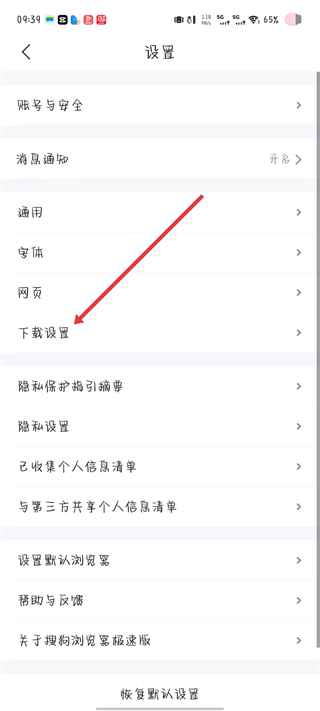 3、在設(shè)置界面里,選擇下載設(shè)置選項(xiàng),進(jìn)入下載相關(guān)的設(shè)置頁面。