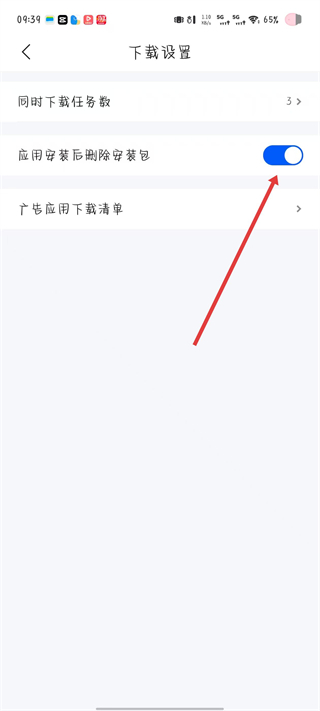 4、找到應(yīng)用安裝后刪除安裝包對(duì)應(yīng)的開關(guān),點(diǎn)擊開啟該開關(guān)即可啟用。
