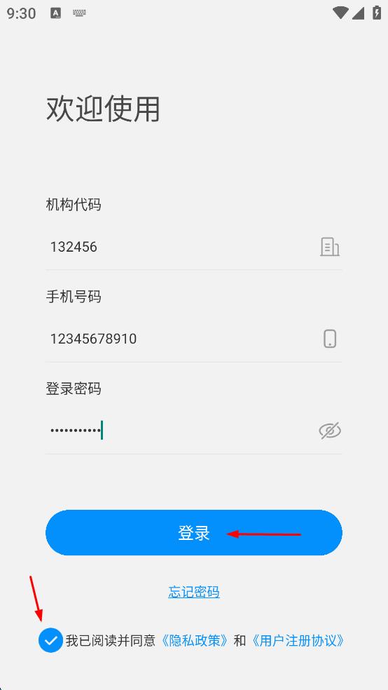 4、最后勾選我已閱讀并同意隱私政策和用戶注冊協(xié)議,點擊“登錄”按鈕。