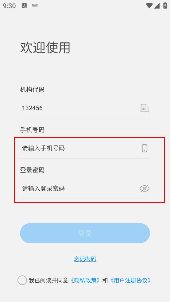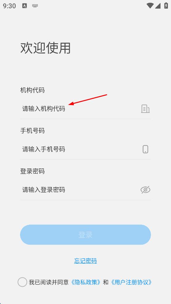2、進入登錄頁面,在“機構(gòu)代碼”欄輸入對應(yīng)的機構(gòu)代碼。