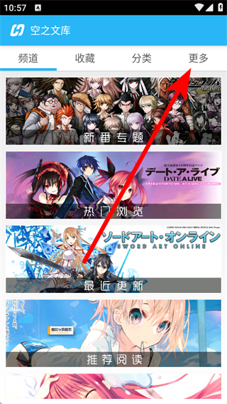 1、在空之文庫首頁,點擊右上角更多選項,進入更多功能頁面。
