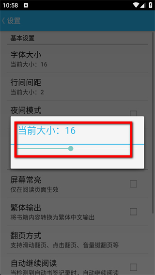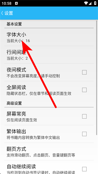 3、在設置界面,點擊字體大小選項,彈出字體大小調節(jié)框。