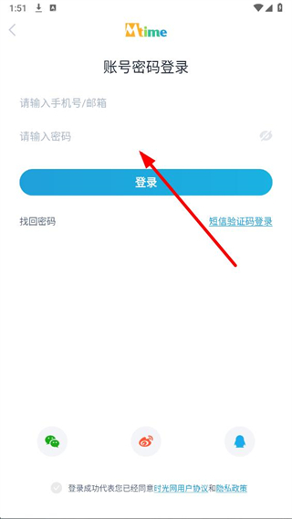 4、在頁面輸入手機號郵箱和密碼,點擊登錄即可完成時光網(wǎng)賬號密碼登錄操作。