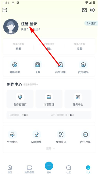 1、在時光網(wǎng)首頁,點擊右下角個人,進入個人頁面。