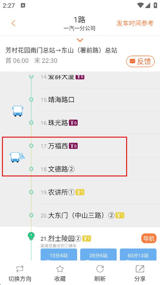 4、進(jìn)入所選公交線路的詳情頁(yè)面后,即可查看該線路的站點(diǎn)信息,包括各站點(diǎn)名稱等內(nèi)容。