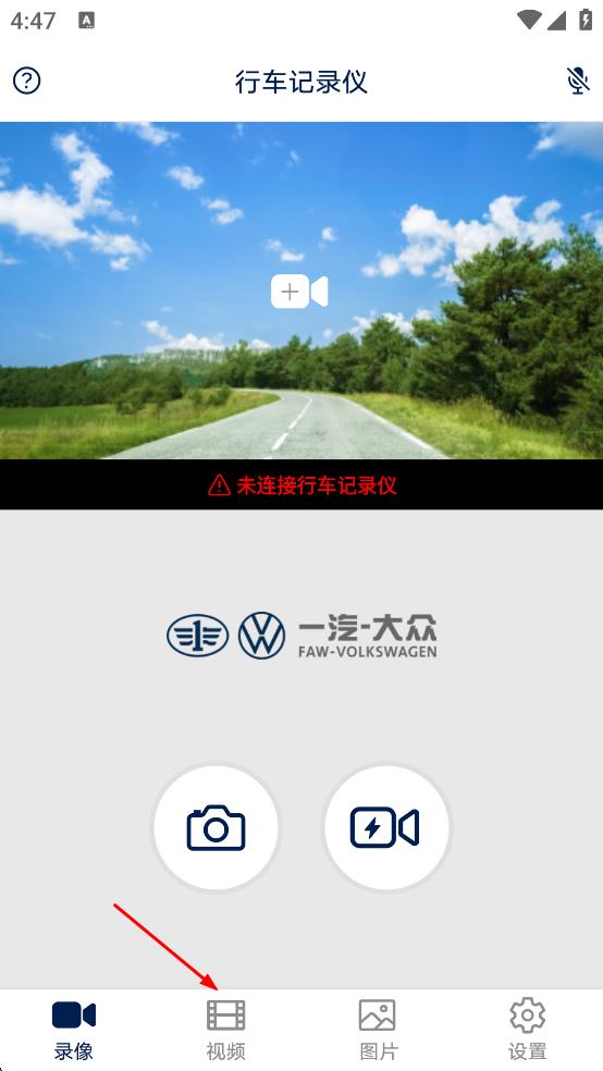 3、完成連接操作后,回到行車記錄儀主界面,點(diǎn)擊底部“視頻”選項(xiàng),進(jìn)入視頻頁面。