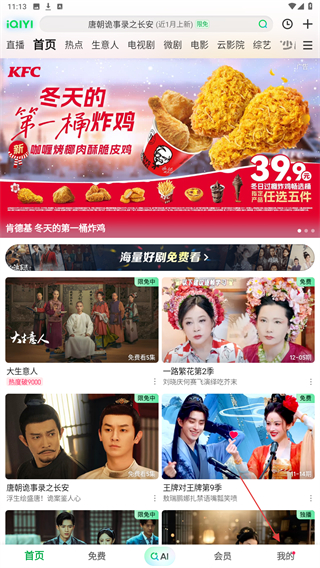 1、啟動(dòng)愛(ài)奇藝APP,在首頁(yè)導(dǎo)航欄點(diǎn)擊我的按鈕。
