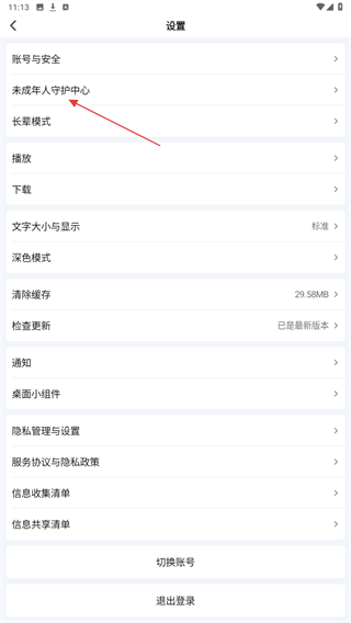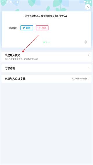 4、進(jìn)入該頁(yè)面內(nèi),點(diǎn)擊下方未成年人模式的按鈕。