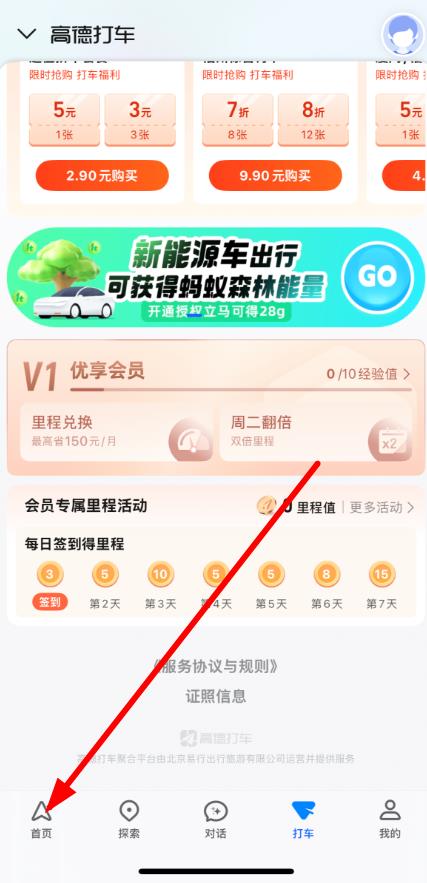 1、打開高德地圖APP,點擊底部導(dǎo)航欄中的首頁選項進入首頁界面。