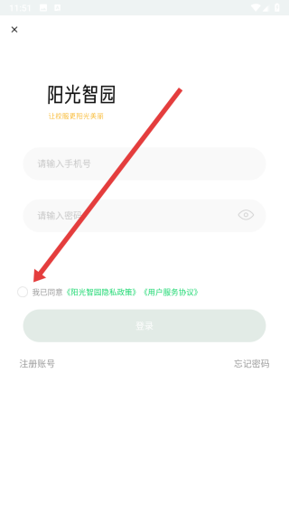 3、在進(jìn)入到登錄頁(yè)面時(shí),需先點(diǎn)擊按鈕勾選同意政策協(xié)議條款。