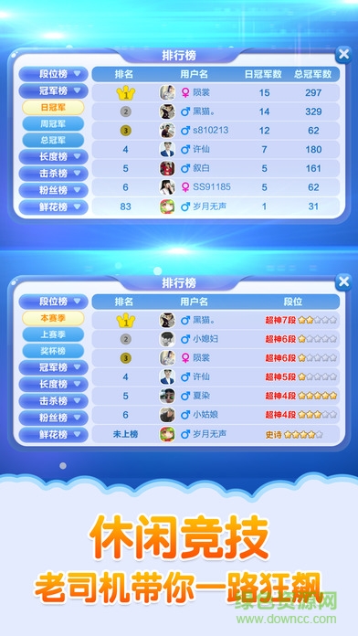 自由戰(zhàn)、段位賽、排行榜、粉絲榜,絕對(duì)公平,技術(shù)決定一切!