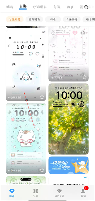 1、打開i主題APP,進(jìn)入主題頁面,找到想要免費(fèi)使用的付費(fèi)主題并點(diǎn)擊。