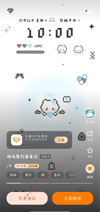 2、在付費(fèi)主題詳情頁,點(diǎn)擊免費(fèi)領(lǐng)取按鈕,彈出免費(fèi)領(lǐng)取的相關(guān)窗口。