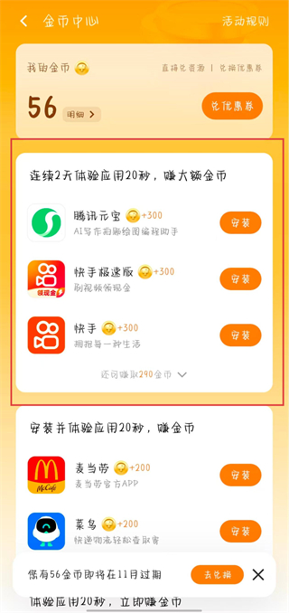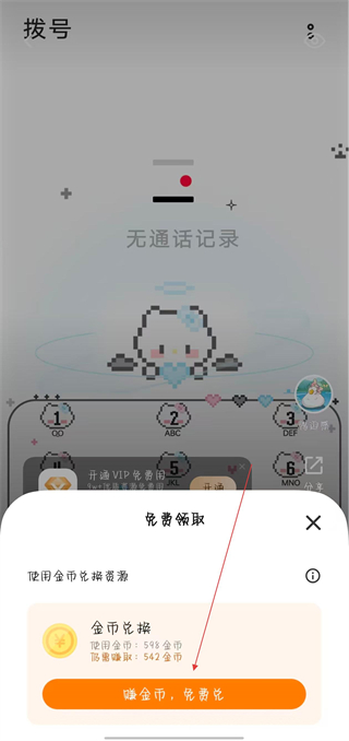 3、在免費(fèi)領(lǐng)取窗口中,點(diǎn)擊賺金幣,免費(fèi)兌,進(jìn)入金幣中心頁面。