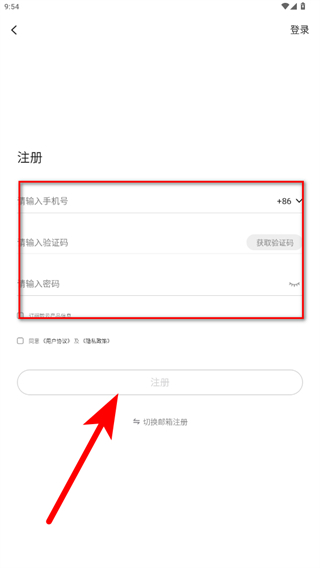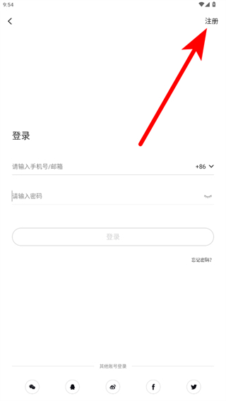 3、在登錄界面,點(diǎn)擊右上角的注冊按鈕。