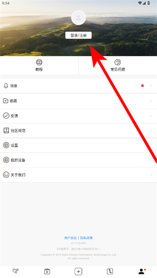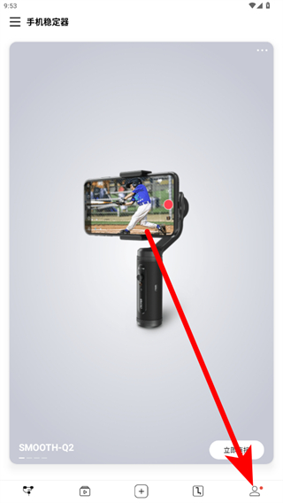 1、打開智云穩(wěn)定器APP,點(diǎn)擊底部的個(gè)人中心圖標(biāo)。
