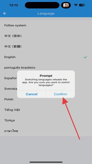 4、點(diǎn)擊后,會(huì)彈出確認(rèn)提示,點(diǎn)擊Confirm的按鈕即可完成切換。