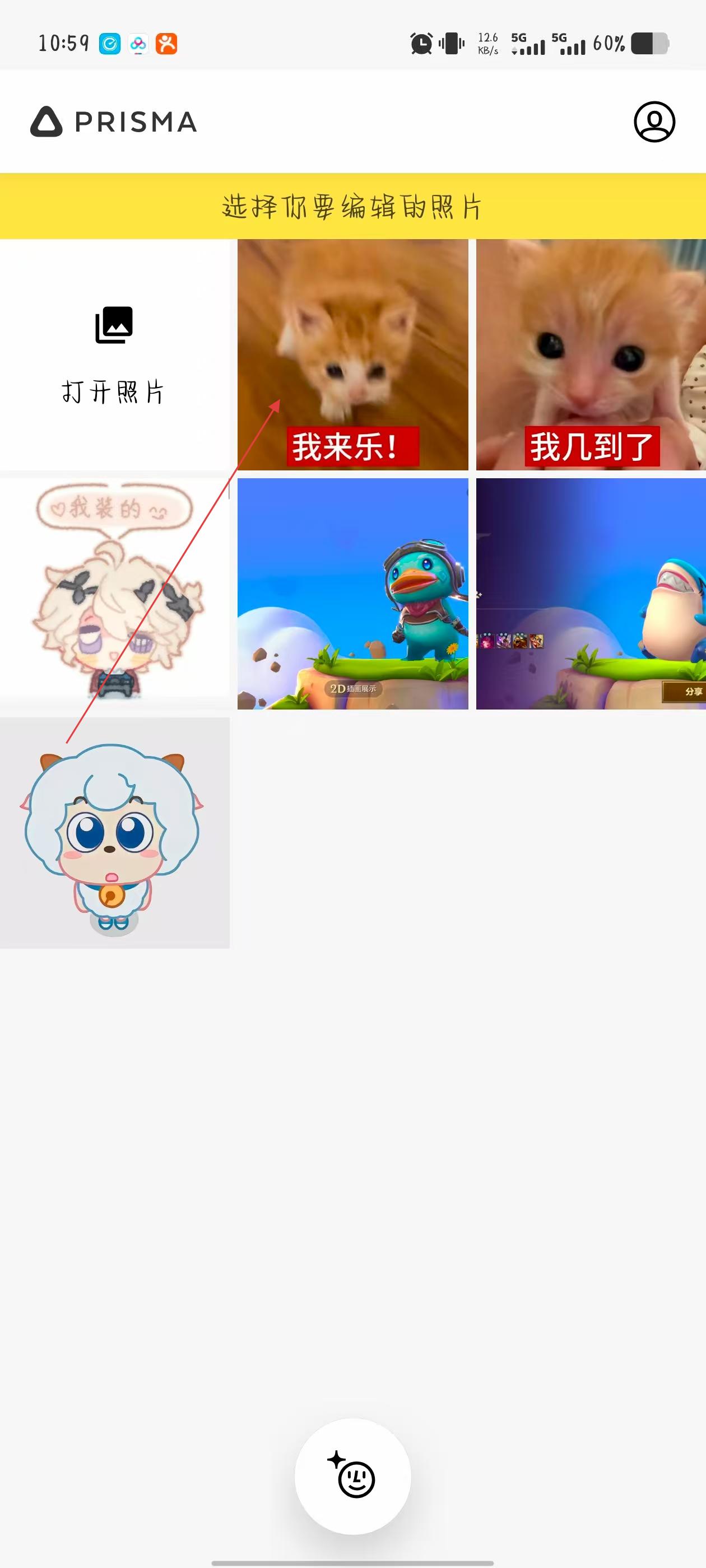 1、打開Prisma軟件,在展示的照片中挑選需要編輯的照片,點擊該照片進入編輯界面。
