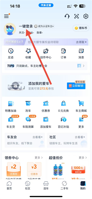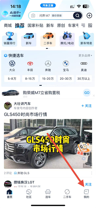1、打開汽車之家app,點(diǎn)擊底部導(dǎo)航欄的我的選項(xiàng)進(jìn)入個人頁面。