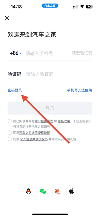 3、在登錄界面,找到密碼登錄選項(xiàng)并點(diǎn)擊,切換至密碼登錄的信息填寫頁面。