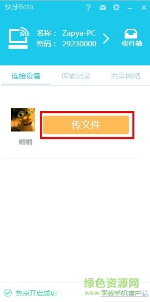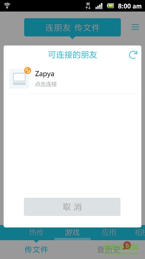 然后開啟快牙手機端點擊“連朋友傳文件”按鈕即可連接