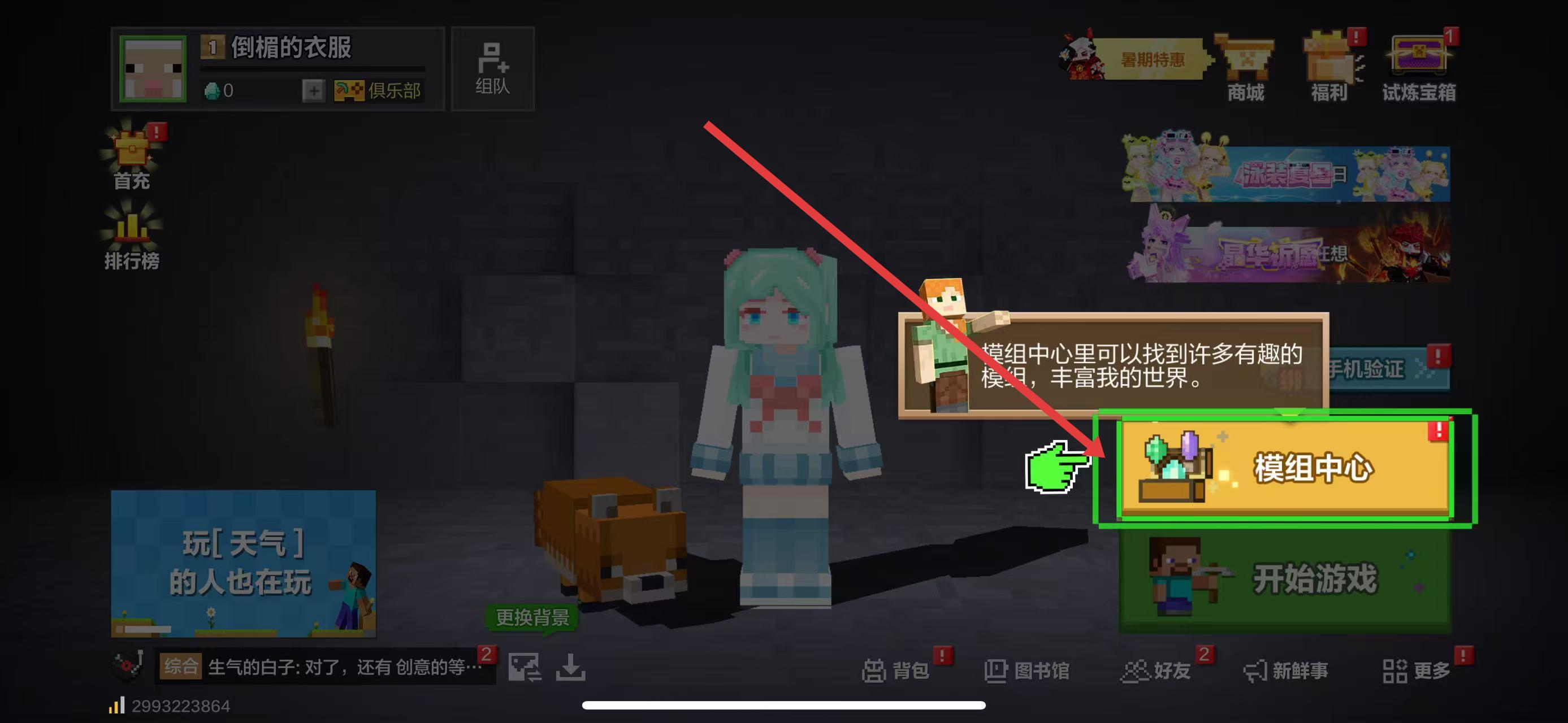 1、在游戲主界面右側,找到標有模組中心的黃色按鈕并點擊,這里能獲取各類豐富模組,助力拓展游戲玩法。