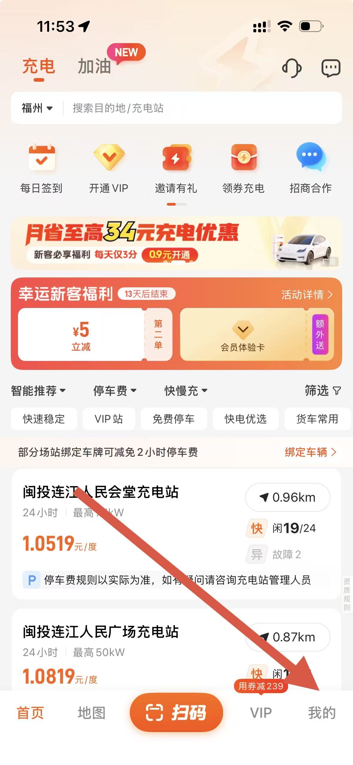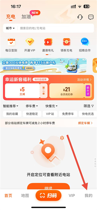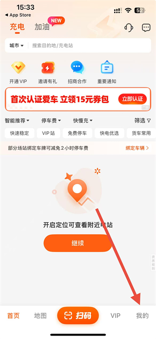 到達(dá)后掃描充電設(shè)備進(jìn)行充電。