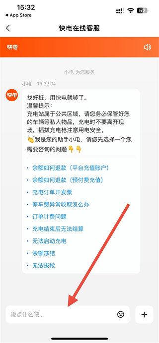 3、在客服中心頁面,點(diǎn)擊右下角在線客服按鈕,進(jìn)入快電在線客服聊天頁面。