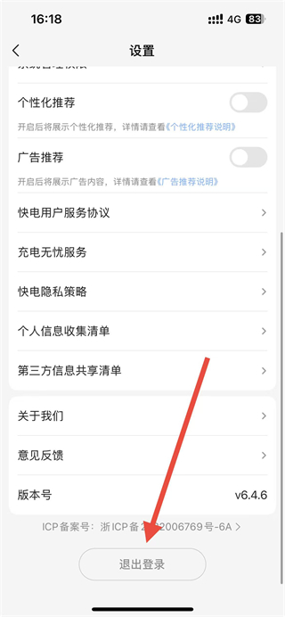 3、在設(shè)置頁面滑動(dòng)至底部,找到退出登錄按鈕,點(diǎn)擊該按鈕即可退出登錄。