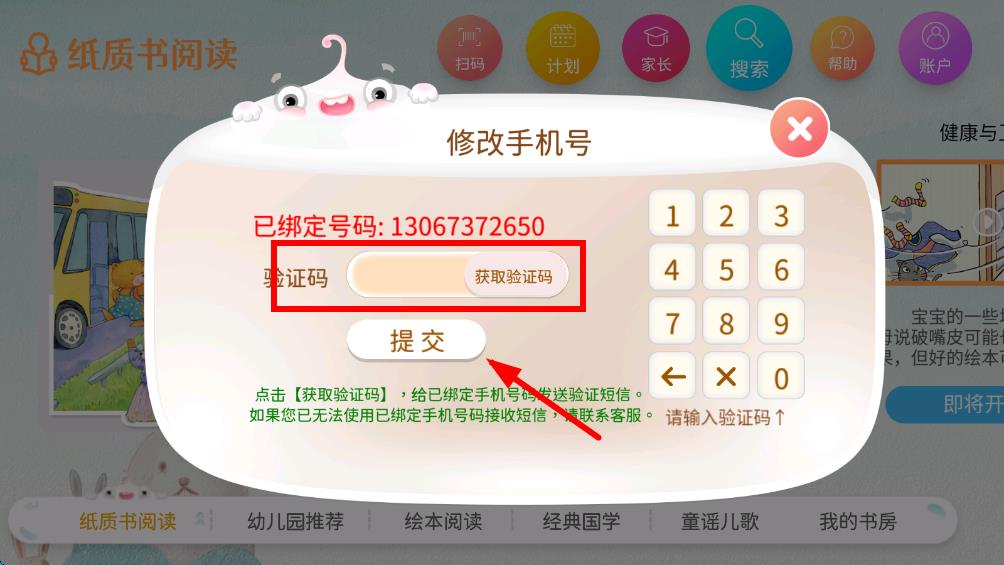 3、點(diǎn)擊修改號(hào)碼后,彈出修改手機(jī)號(hào)界面,輸入手機(jī)號(hào)獲取驗(yàn)證碼點(diǎn)擊提交,后續(xù)按照提示即可完成手機(jī)號(hào)修改。