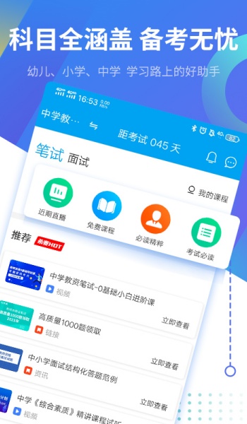 本應(yīng)用涵蓋教師資格證考試以及教師招聘考試智能題庫、視頻課程、直播課堂、學(xué)習(xí)禮包等等多種功能。滿足教師資格證以及教師考編的考生自學(xué)、刷題、聽課等各種備考需求。
