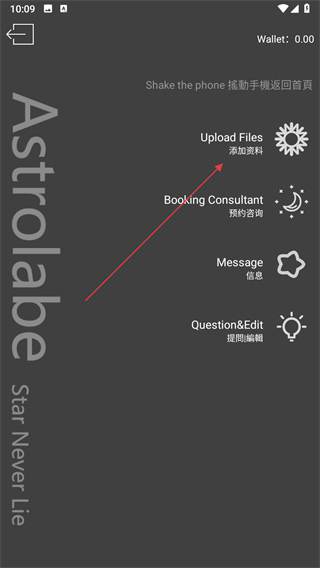 2、在星盤頁(yè)面,點(diǎn)擊添加資料選項(xiàng),進(jìn)入資料填寫界面。