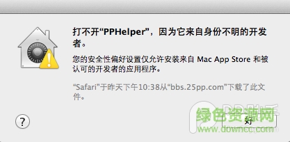 2、安裝后打開(kāi)如果出現(xiàn)“打不開(kāi) PPHelper,因?yàn)樗鼇?lái)自身份不明的開(kāi)發(fā)者” 的提示而無(wú)法打開(kāi),我們只需在系統(tǒng)的偏好設(shè)置設(shè)置一下就可以正常使用,方法如下: