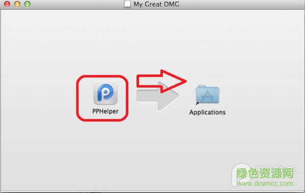 1、下載好安裝包后雙擊打開(kāi),然后將PP助手的圖標(biāo)拖到Applications的文件夾里就可以完成安裝操作。