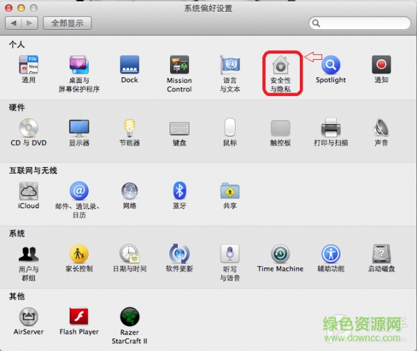 3、打開(kāi)系統(tǒng)的偏好設(shè)置--安全性與隱私。