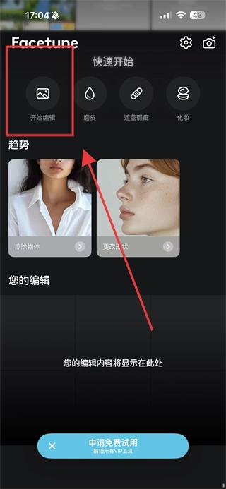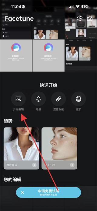 1、打開Facetune應(yīng)用,在主界面點(diǎn)擊開始編輯,進(jìn)入選擇圖片的流程。